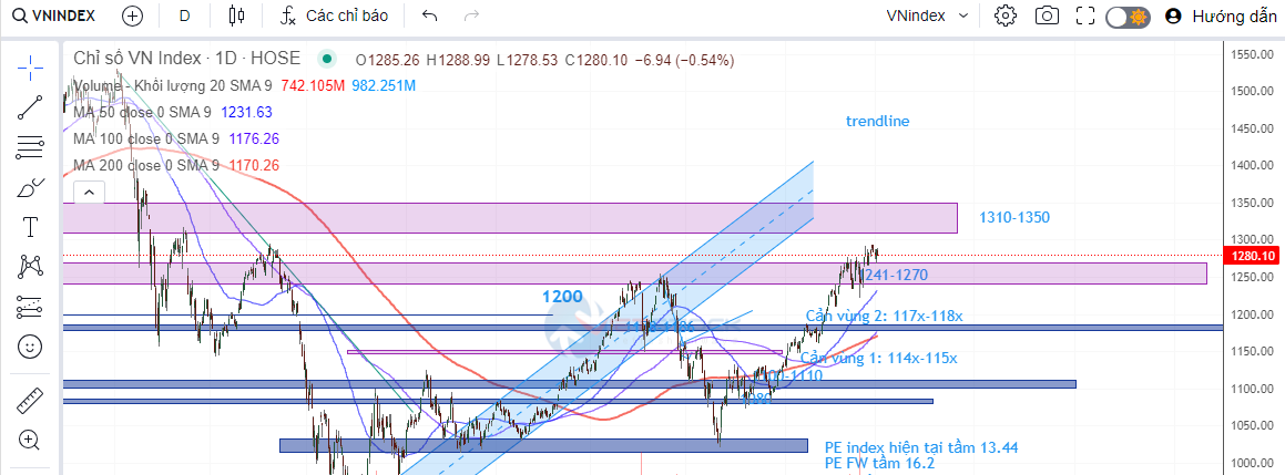 để xem mấy phiên tới đặc biệt là chốt tuần có trên vùng hỗ trợ ko (1250-1270)