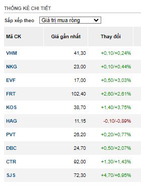 các cụ nhìn nè Nn mua 10 mã mạnh nhất TT thì hầu như bọn đó tăng, trừ 1 mã HAG tăng nóng quá nên bà con chốt lãi. khi volume cơ sở thấp bọn ấy có sức ảnh hưởng nhất định.phiên nay NN vẫn bán