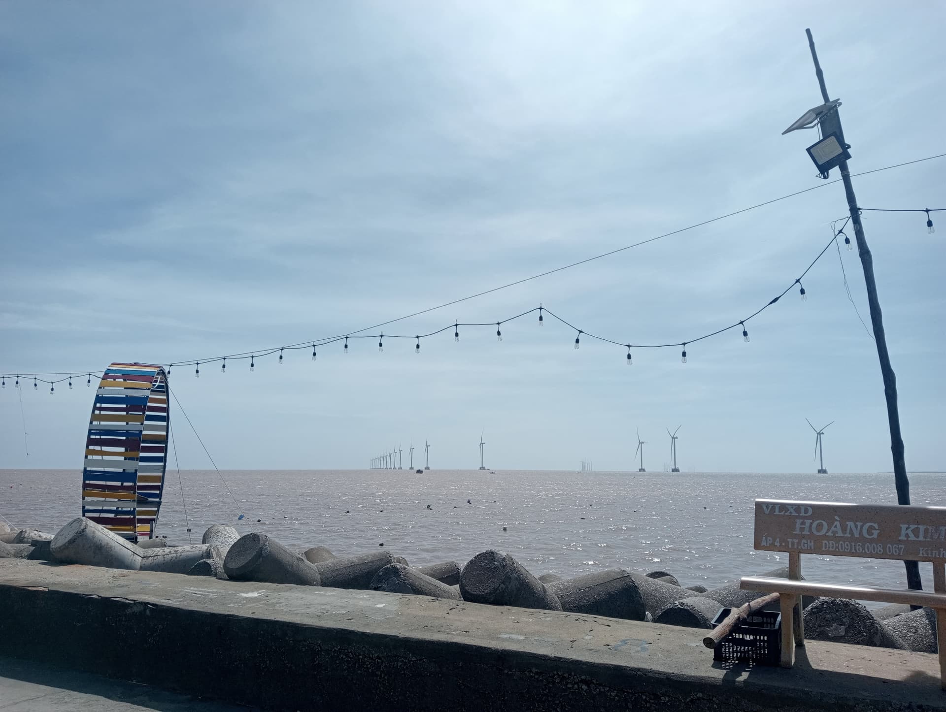 Cá to quá nên lúc này em ngồi trên bờ thôi, không dám xuống nước dù thấy thính rải nhiều lắm.
