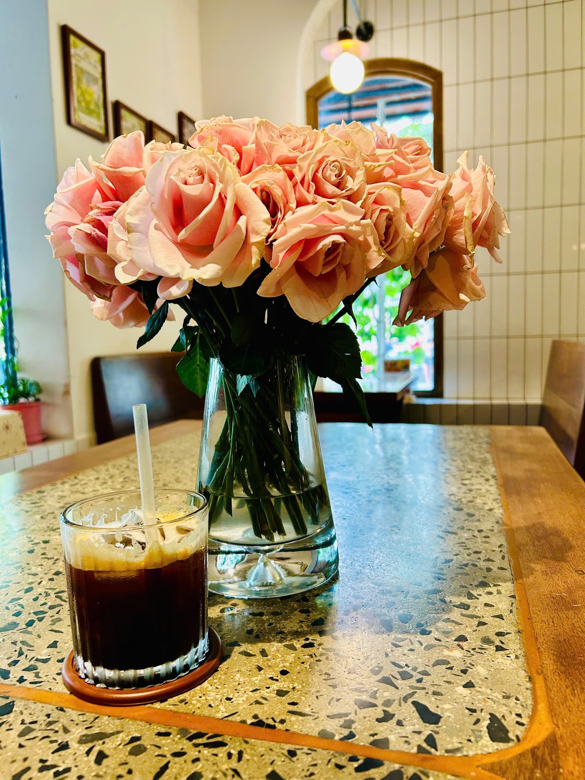 Thành quả cuối tuần của em, chạy ngắm thành phố lên đèn rồi măm măm luôn. quán này trang trí hoài cổ với dĩa than, băng cát sét, máy quay phim, ti vi thùng… đồ ăn ngon, xứng với giá tiền. 1 phần bò nhìn vậy chứ đủ hai người ăn. Em kêu vầy là hơi dư.