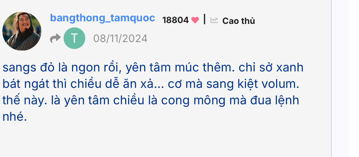 Đợi phiên chiều nha ae, chưa vội. Sáng quan sát đã.