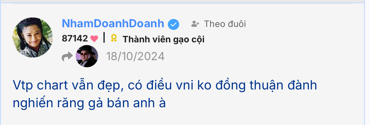 Tôi hô sập mấy tháng khi nào vậy? Pic “trên đỉnh trường sơn ta hát” tôi cảnh báo đỉnh đó, ae vào xem đúng ko? Tt về 1244 sau đó có nhịp hồi lên vùng 1270, tôi mua dcm 36.x, tng 24.x đó giờ vni về 1209 đã lỗ chưa?