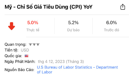 Chỉ số CPI của Mỹ giảm, thấp hơn so với dự kiến.