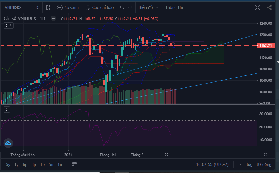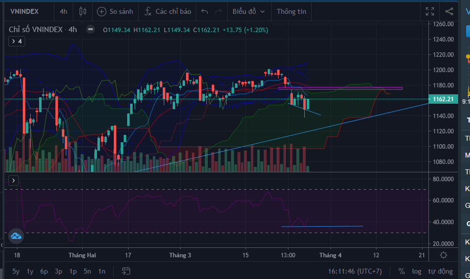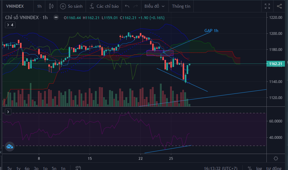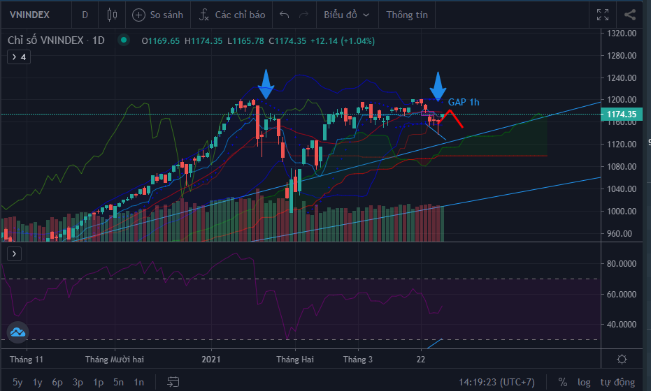 -Theo chart 1 day cho xu hướng giảm ,tuy nhiên có GAP bên trên