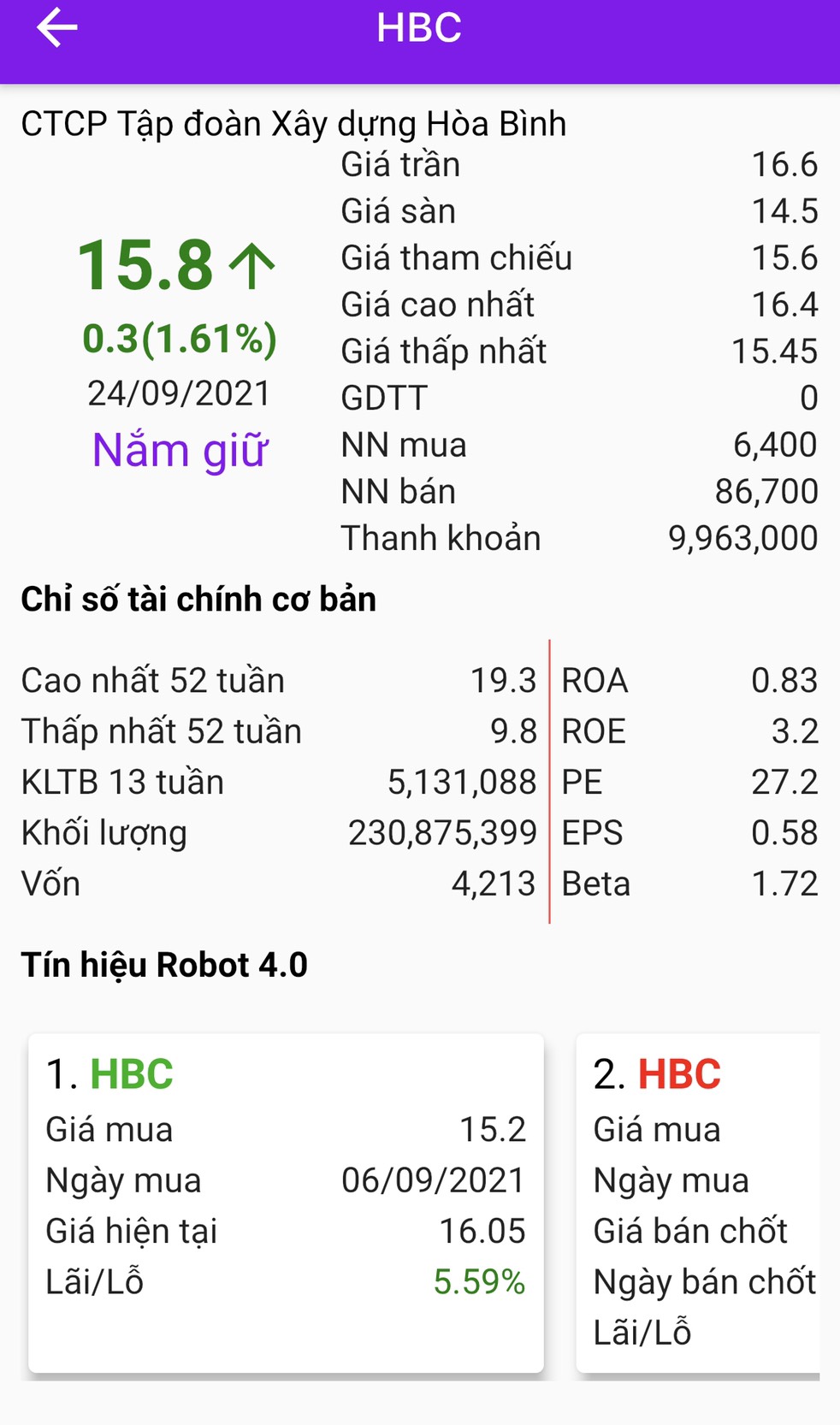 Khuyến nghị: MUA vùng giá 15.2 Ngày 06/09/2021