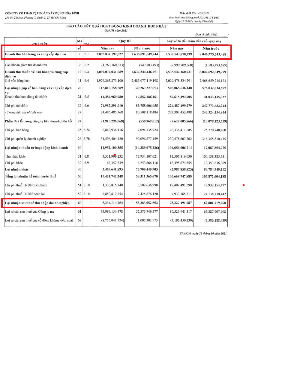 Năm 2021, HBC dự kiến doanh thu đạt 13.500 tỷ đồng, tăng 20,26% so với năm 2020; lợi nhuận đạt 235 tỷ, tăng 180,86% so với năm 2020 và như vậy, HBC mới hoàn thành hơn 30% kế hoạch lợi nhuận năm. Do đó quý 4 sẽ quý lợi nhuận siêu khủng