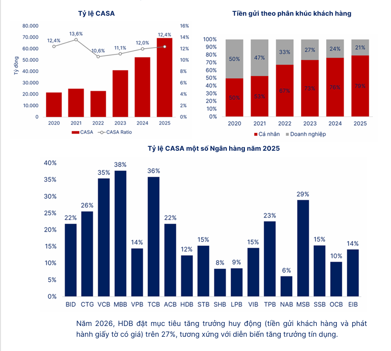 - Câu chuyện đầu tư: Kế hoạch IPO của HDSaison và HDBS trong năm 2026; HDB định hướng tìm kiếm nhà đầu tư chiến lược nước ngoài nhờ giới hạn tỷ lệ sở hữu nước ngoài được tăng lên 49%.