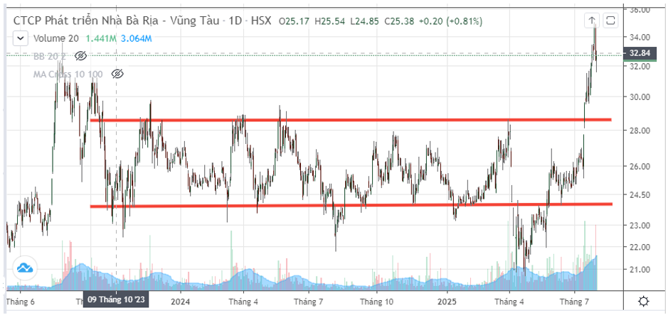 Trong tháng 7 HDC đã có đà tăng rất tốt để bứt phá khỏi nền giá 24-28k/cp đã được thiết lập 1.5 năm qua. Thời gian tới giá cổ phiếu sẽ diễn biến ra sao sau khi bứt phá khỏi nền này?