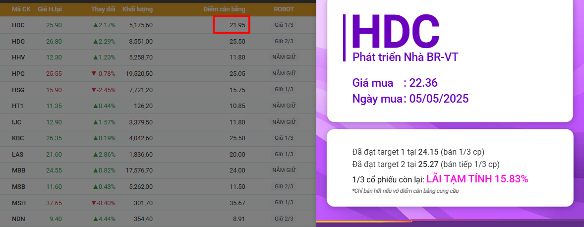 Cổ phiếu HDC cũng đã vượt điểm cân bằng cung cầu phiên 5/5 và cho cơ hội sóng mới!