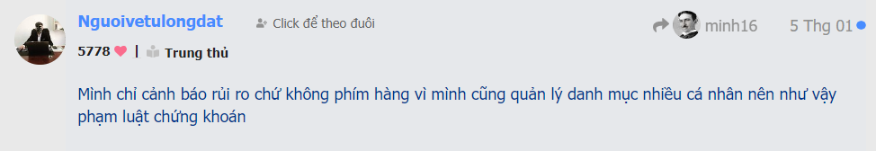 Còn thể loại lươn lẹo, sai không nhận kiếm cả nick ảo vào chửi thì thuộc loại vô đạo rồi, bày đặt “mình quản lý quỹ nên không nói cổ phiếu vì vi phạm luật chứng khoán”. Ngáo cần