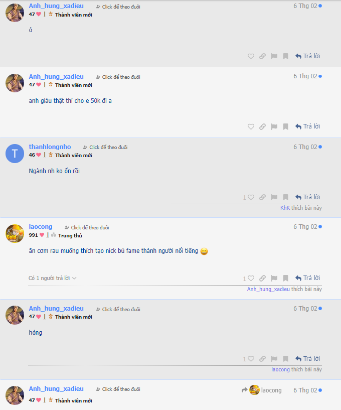 đó trong hình này cũng thấy ban đầu nó hùa theo thằng lao công khịa tao. mày vừa cung cấp bằng chứng nó k phải cờ lon của tao rồi haha
