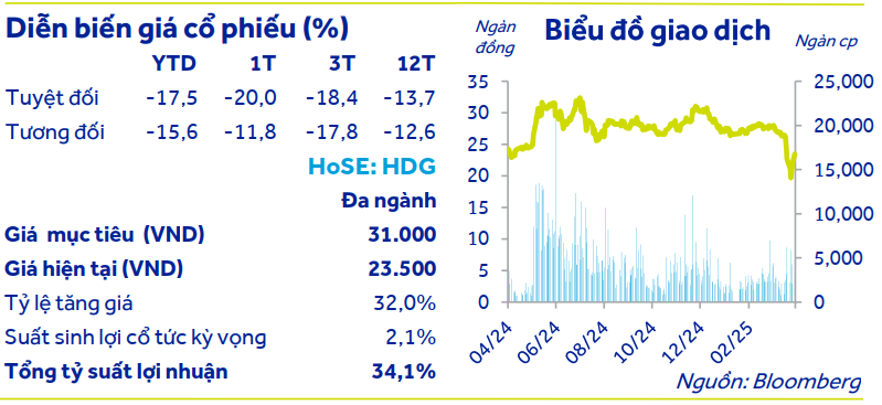 - Giá mục tiêu: 31.000 đồng/cp, cao hơn ~34% so với mức giá hiện tại (23.500 đồng).