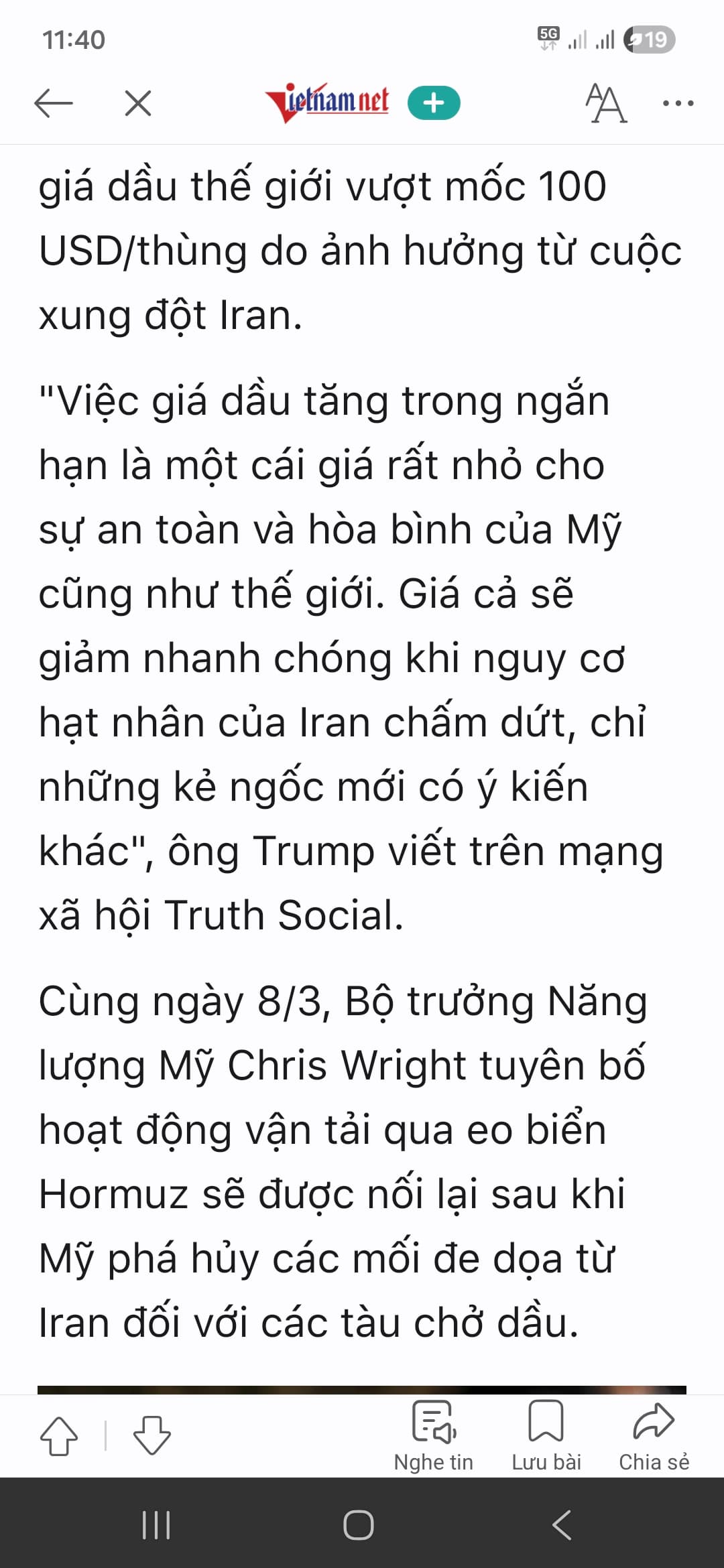 Chính vì vậy mà Trump nói cái giá của việc giá dầu tăng rất nhỏ nếu I răng sở hữu VKHN.