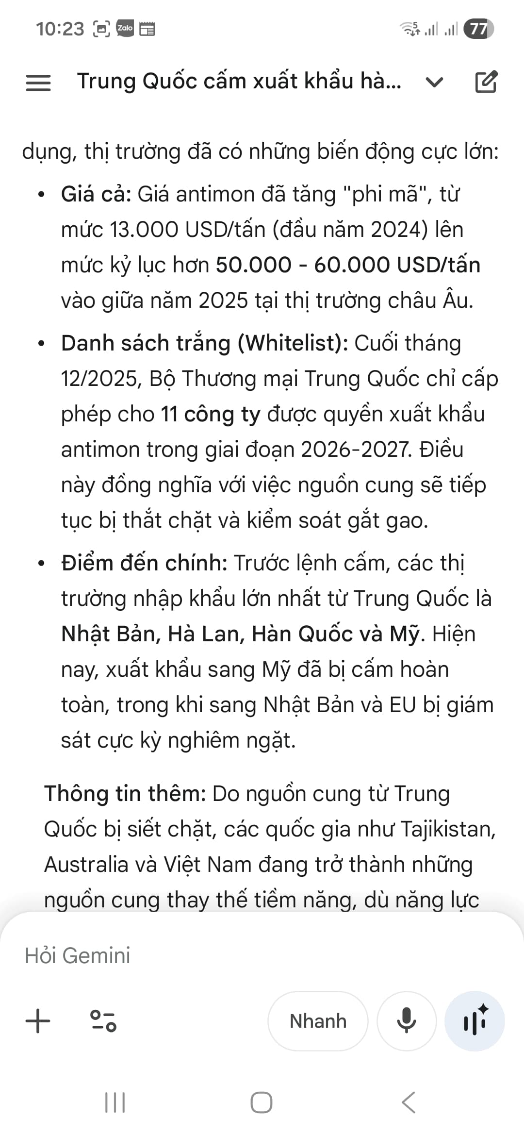 Chiến tranh thương mại Mỹ - Trung. Trung - nhật thì kim loại hiếm như Antimon ngày càng đắt đỏ. HGM siêu phẩm sau nay.