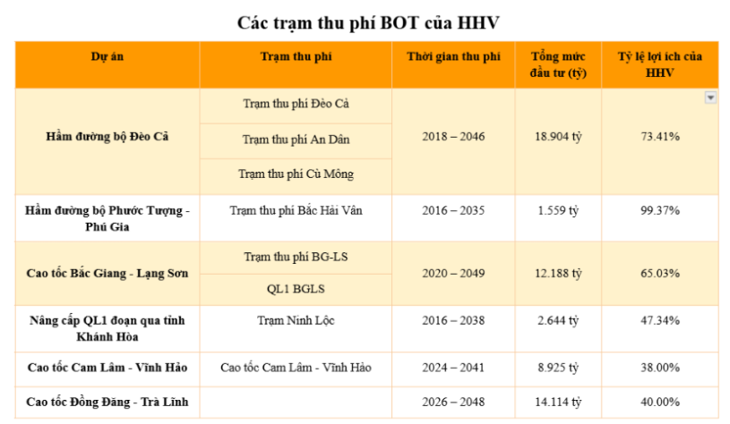 Hai dự án BOT lớn nhất của HHV – Đèo Cả là hầm đường bộ qua Đèo Cả và cao tốc Bắc Giang – Lạng Sơn đang gặp khó về thu phí, khiến kế hoạch tài chính bị ảnh hưởng.