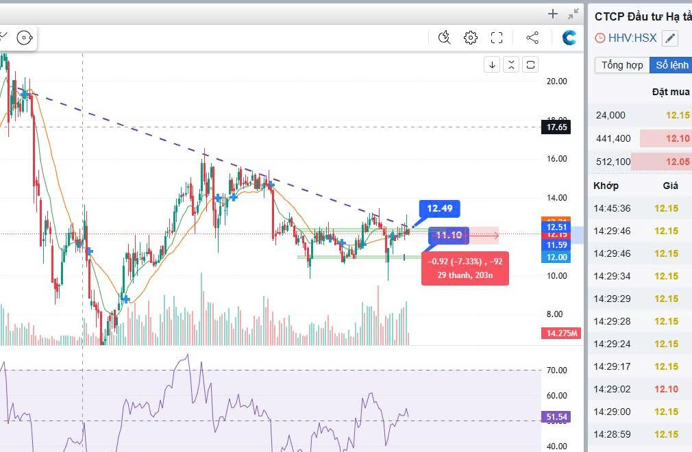 HHV đã tạo nền tích lũy quanh vùng 11-12, kéo dài nhiều tuần, thể hiện sự hấp thụ cung tốt.