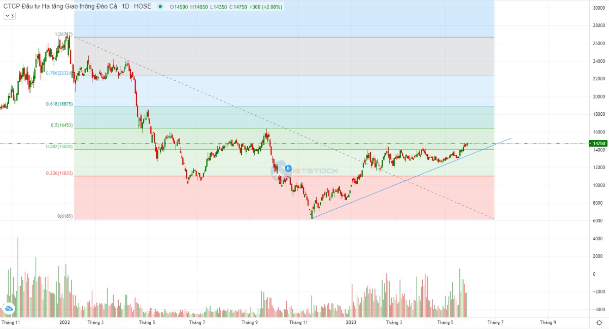 Kể từ đầu tháng 1/2023 HHV đã có mức tăng giá ấn tượng quanh vùng mệnh giá 10 – 14, thanh khoản cũng có sự gia tăng đáng kể từ vùng này