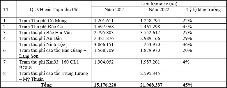 Hoạt động của Công ty con – Thu phí các dự án hạ tầng giao thông đường bộ