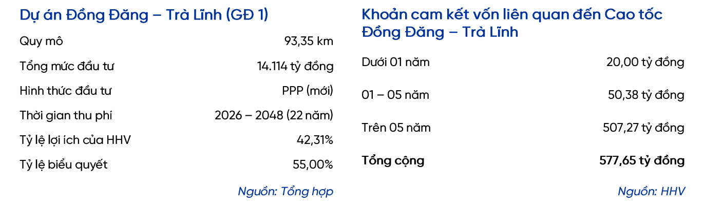 Dự án Cao tốc Đồng Đăng - Trà Lĩnh dự báo sẽ có đóng góp lớn vào doanh thu của HHV trong tương lai. Được biết, backlog xây lắp của dự án này hiện tại (Q2/2025) đang là 1655 tỷ đồng. Hơn nữa, khi dự án thông đường, HHV sẽ được thông qua phí cao tốc.
