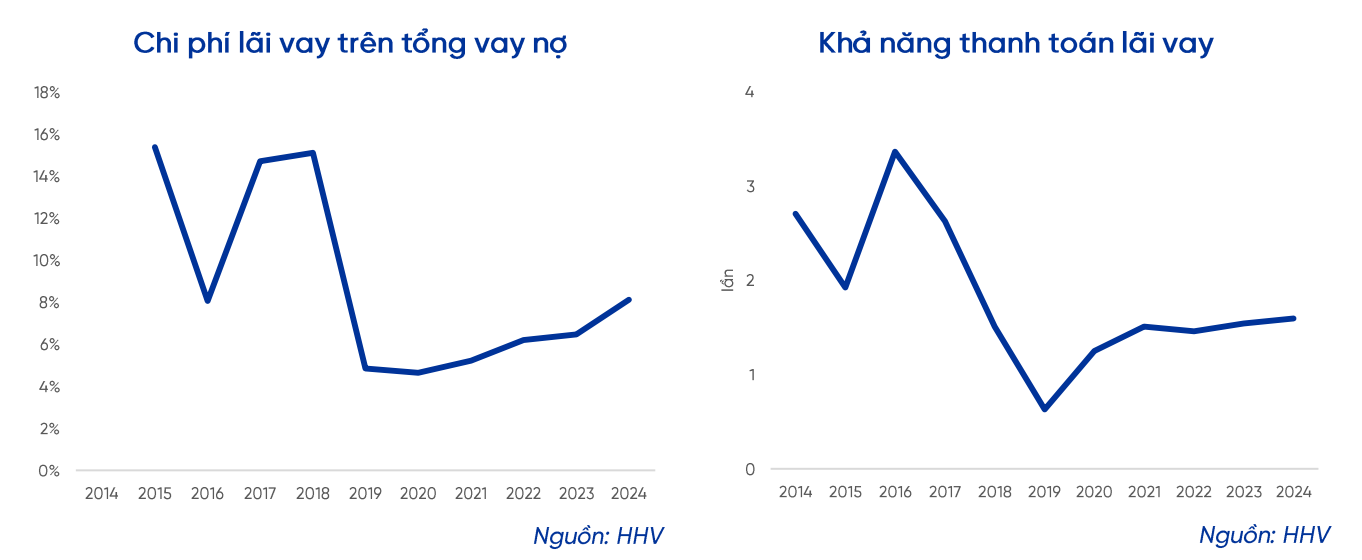 HHV dự kiến sẽ không gia tăng vay nợ trong thời gian tới, do tỷ lệ đòn bẩy trong tài chính hiện ở mức cao (nợ phải trả trên VCSH vượt 2,5 lần). Bên cạnh đó, một số dự án gặp vướng mắc khiến tiến độ giải ngân từ phía ngân hàng bị chậm lại, trong khi chi phí lãi vay đang có xu hướng gia tăng, tạo thêm áp lực lên tình hình tài chính của doanh nghiệp.