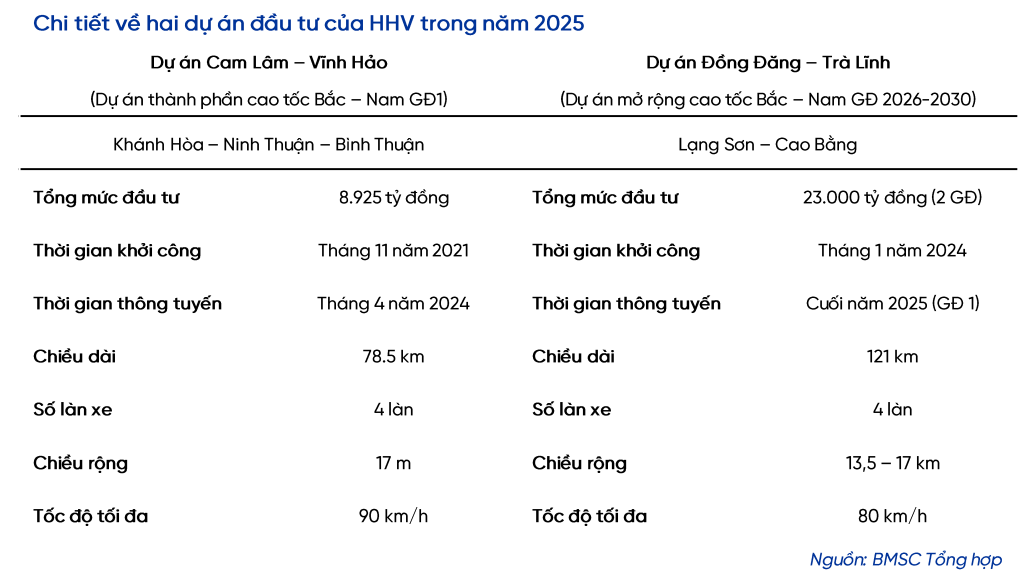 - Dự án cao tốc Đồng Đăng - Trà Lĩnh (HHV sở hữu 40% tỷ lệ biểu quyết) dự kiến sẽ hoàn thành vào cuối năm 2025.