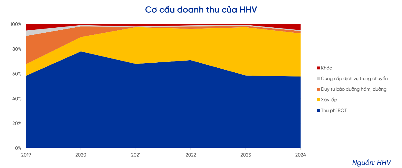 Về cơ cấu doanh thu, mảng thu phí BOT chiếm tỷ trọng lớn nhất với gần 58% trong năm 2024. Tuy nhiên, tỷ trọng mảng này đang có xu hướng giảm, nhường chỗ cho sự tăng trưởng của mảng xây lắp trong bối cảnh đầu tư công ngày càng được đẩy mạnh. Đây chỉ là diễn biến ngắn hạn, bởi theo Đèo Cả Group, HHV sẽ tiếp tục tập trung vào mảng cốt lõi là đầu tư và quản lý vận hành các dự án hạ tầng giao thông.