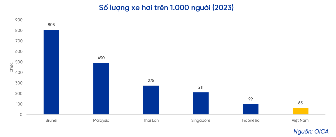 Trong dài hạn, lưu lượng xe được kỳ vọng sẽ tiếp tục tăng trưởng nhờ tỷ lệ sở hữu ô tô tại Việt nam vẫn còn nhiều dư địa để mở rộng. Dựa vào số liệu năm 2023, cứ 1000 người thì có 63 người sở hữu ô tô, đây là mức thấp so với trung bình các nước trong khối ASEAN, 324 người. Những yếu tố hỗ trợ bao gồm: thu nhập người dân ngày càng cải thiện, giá thành ô tô trở nên hợp lý hơn, cùng với sự phát triển mạnh mẽ của hạ tầng giao thông.