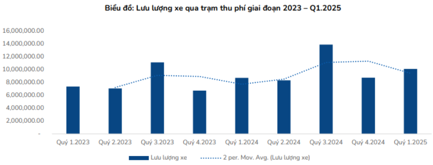 Mảng BOT: doanh thu đạt 526 tỷ đồng (+10% yoy) chủ yếu nhờ lượng xe qua trạm thu phí tăng 16% yoy – đạt mốc 1,4 triệu lượt trong quý. Theo đó, lưu lượng xe thông qua hầm Đèo Cả - Hải Vân tốt hơn dự báo sau khi được kết nối hoàn toàn với tuyến cao tốc Bắc Nam giai đoạn 2. Ngoài ra, dự án Cam Lâm – Vĩnh Hảo đi vào thu phí trong Q1 cũng góp phần vào mức tăng trưởng của mảng thu phí này.