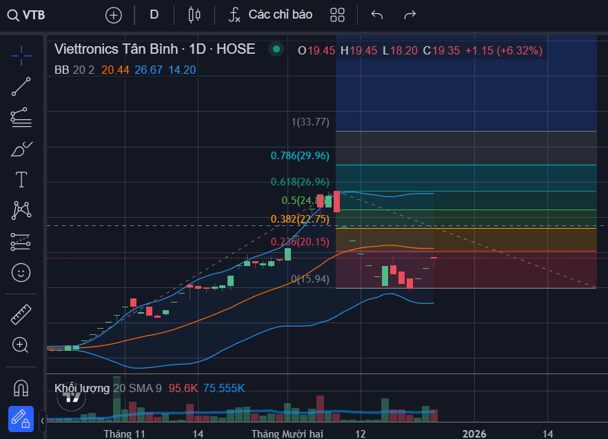 Giảm đúng Fibo 618, để xem có hình thành CUP & HANDLE như lý thuyết không