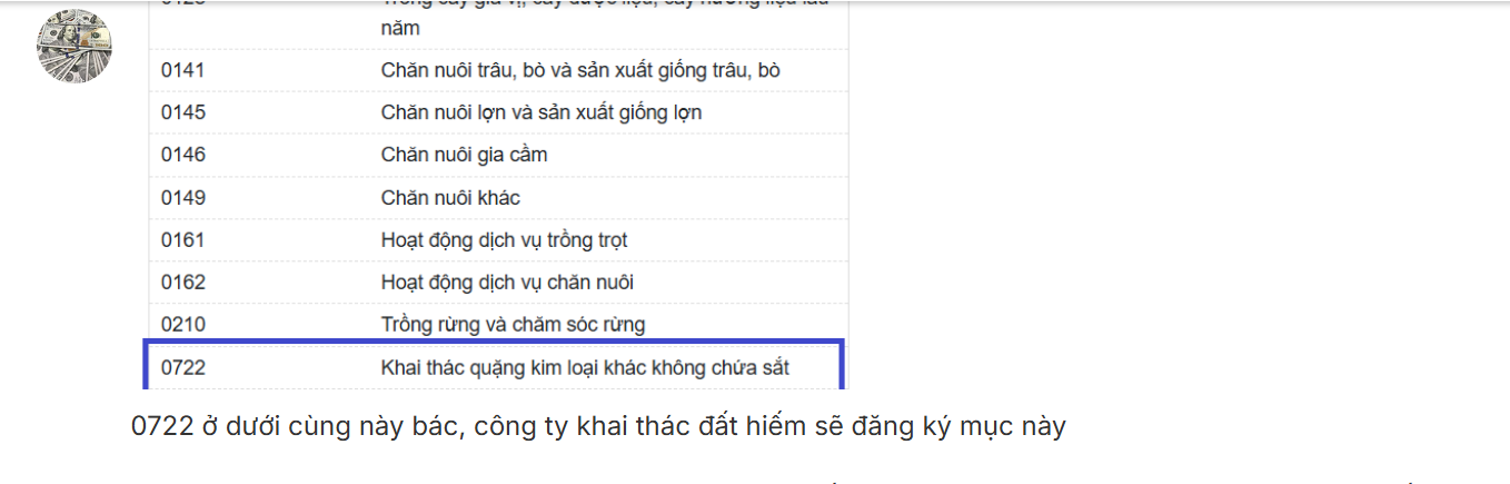 0722 ở dưới cùng này bác, công ty khai thác đất hiếm sẽ đăng ký mục này