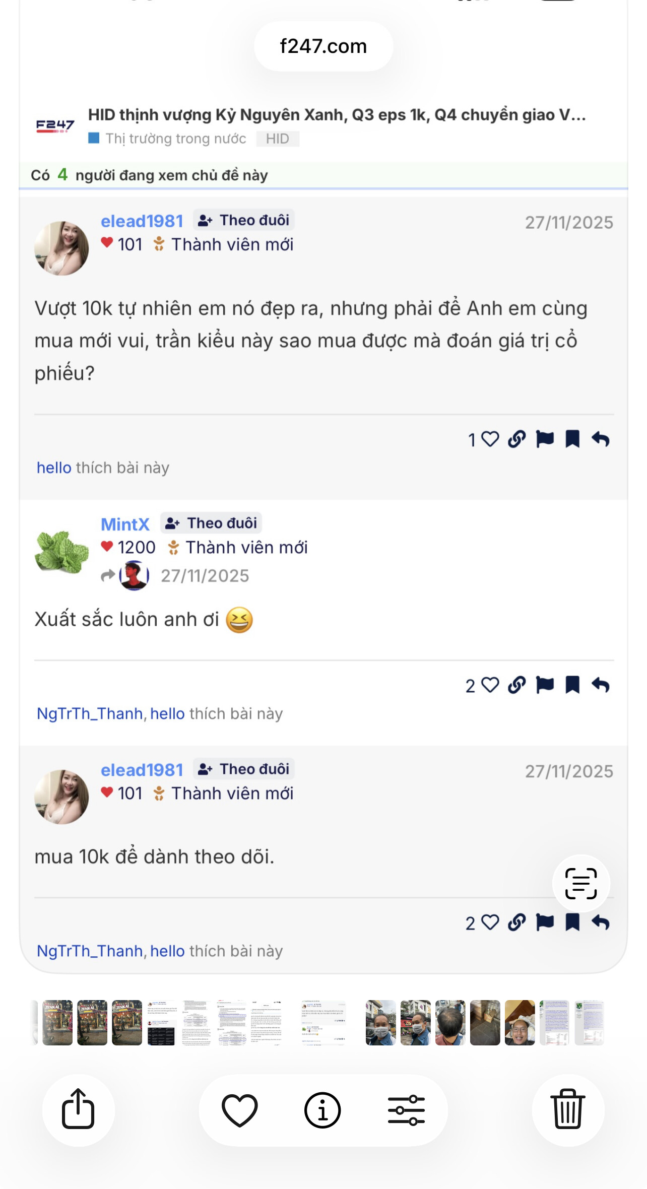 Bây giờ nhóm này dùng cty Khoán Sản Sao Phương Bắc gì đó để đưa HID lên lùa tiếp, mọi người cẩn thận, tôi chỉ cảnh báo, không khuyến nghị mua bất kỳ cổ phiếu nào của HID.