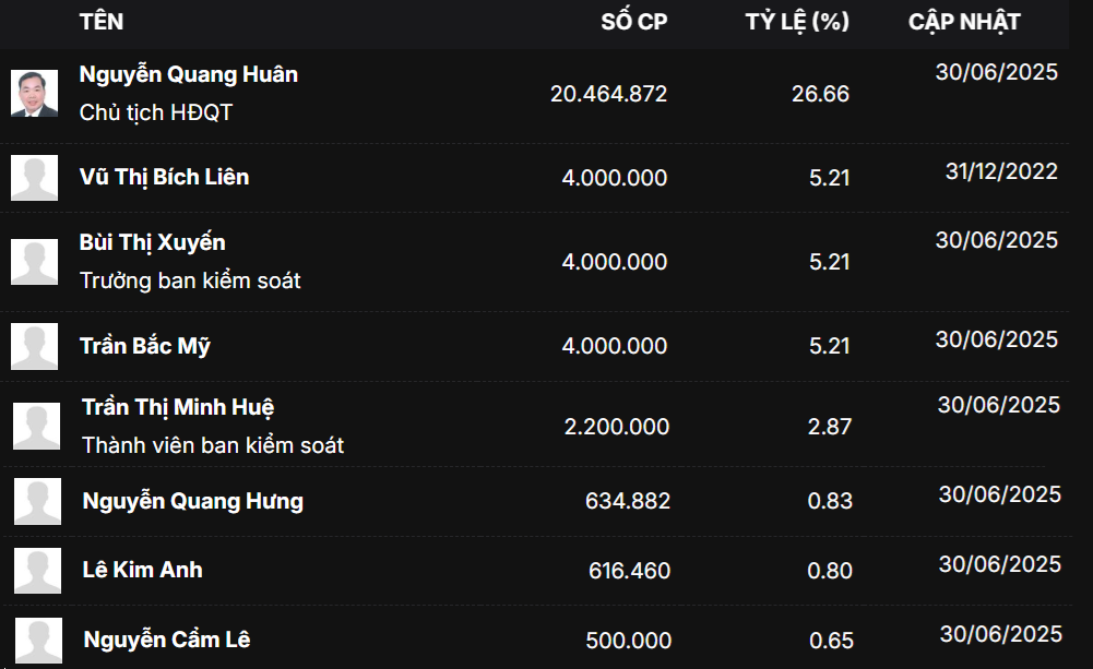 Trong hình là cập nhật cổ đông nội bộ của HID