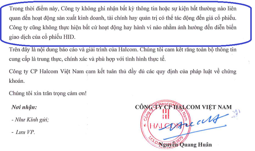 Các bài báo, hoặc ý kiến đăng tải HID không có bất kỳ lợi ích nào trong thương vụ chuyển giao Halcom Hồng Đức, hoặc khẳng định chỉ có lợi ích chuyển giao một lần là sai sự thật, nhằm đè giá cổ phiếu, tuy họ thành công làm HID bị bán sàn mạnh, nhưng nó cũng là một điều tốt với chứng khoán, khi người thiếu kiến thức ăn xổi bán ra cho người có kiến thức đầu tư chuyên nghiệp mua vào.