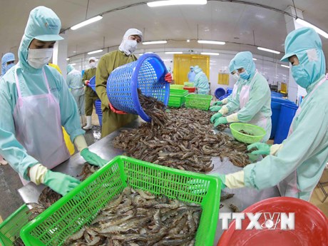 Dây chuyền chế biến tôm xuất khẩu. (Ảnh: Vũ Sinh/TTXVN).