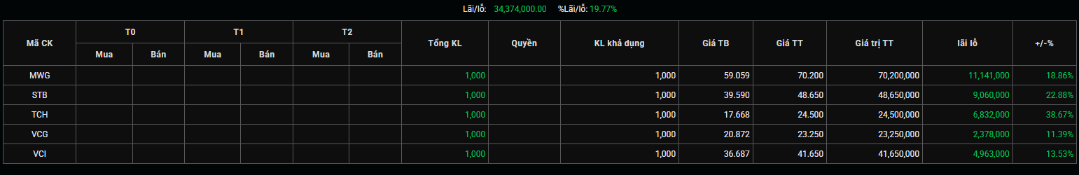 Hôm nay tới VCI nhỉ =))) danh mục cuối cùng cũng tăng full 10% hết rồi đó