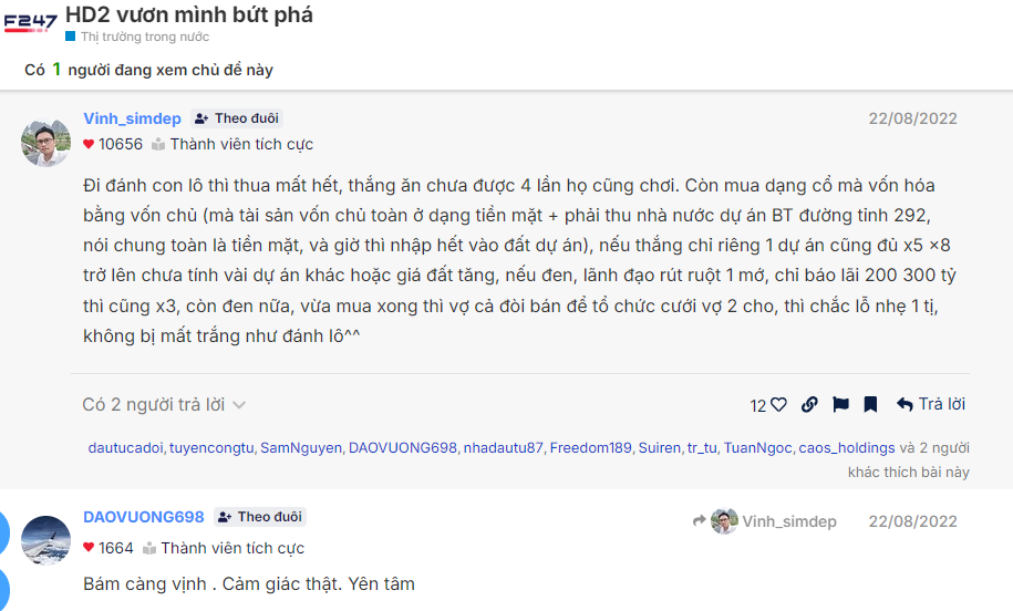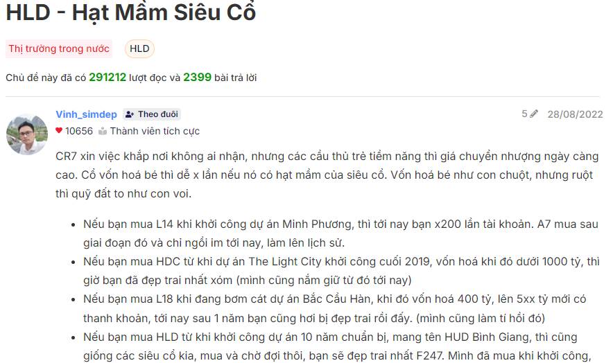 Ừ , tôi bt ông có mua HDC lúc đó…Vậy chắc giờ ông cũng được chục tỷ rồi nhỉ? Vì nó x cả chục lần rồi mà…Ông đem số đó đẩy vào con HLD được không?