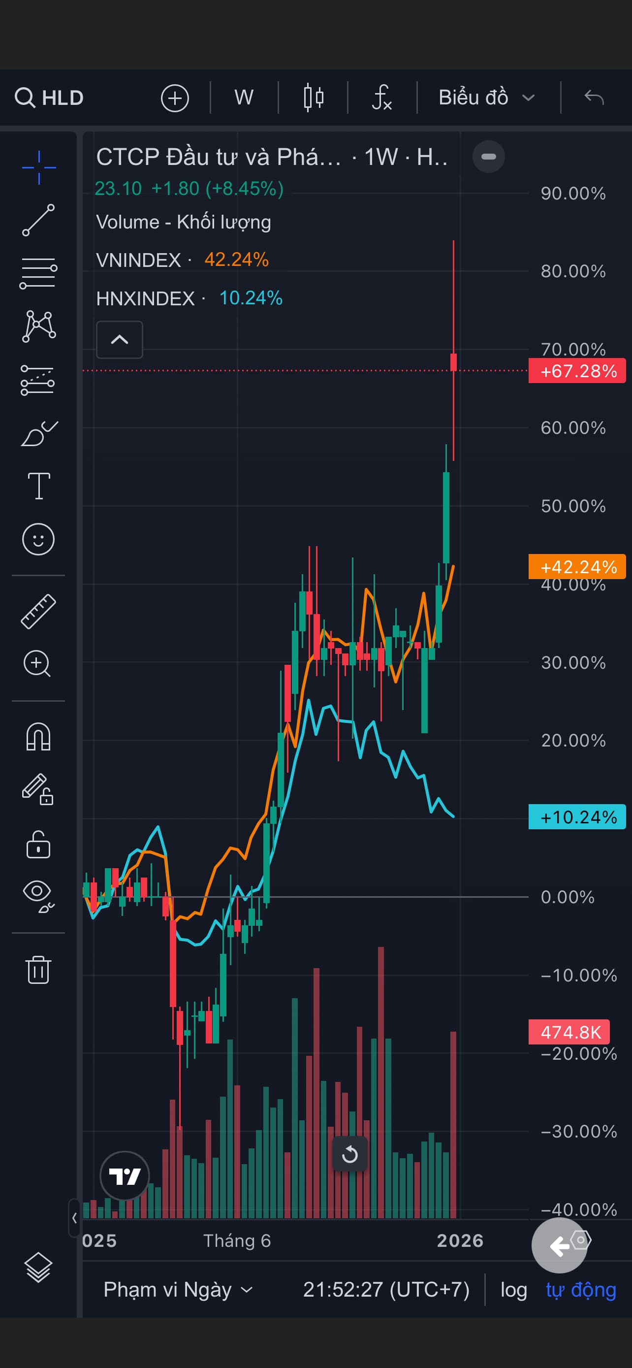 Năm qua, VNindex tăng mấy trăm điểm nhờ họ Vin kéo là chính, nhìn qua HNX-index không có hiện diện họ Vin là thấy câu chuyện khác ngay. Nhưng HLD vẫn kịp khá hơn gấp rưỡi VNindex và gấp 6,5 lần HNX-index.
