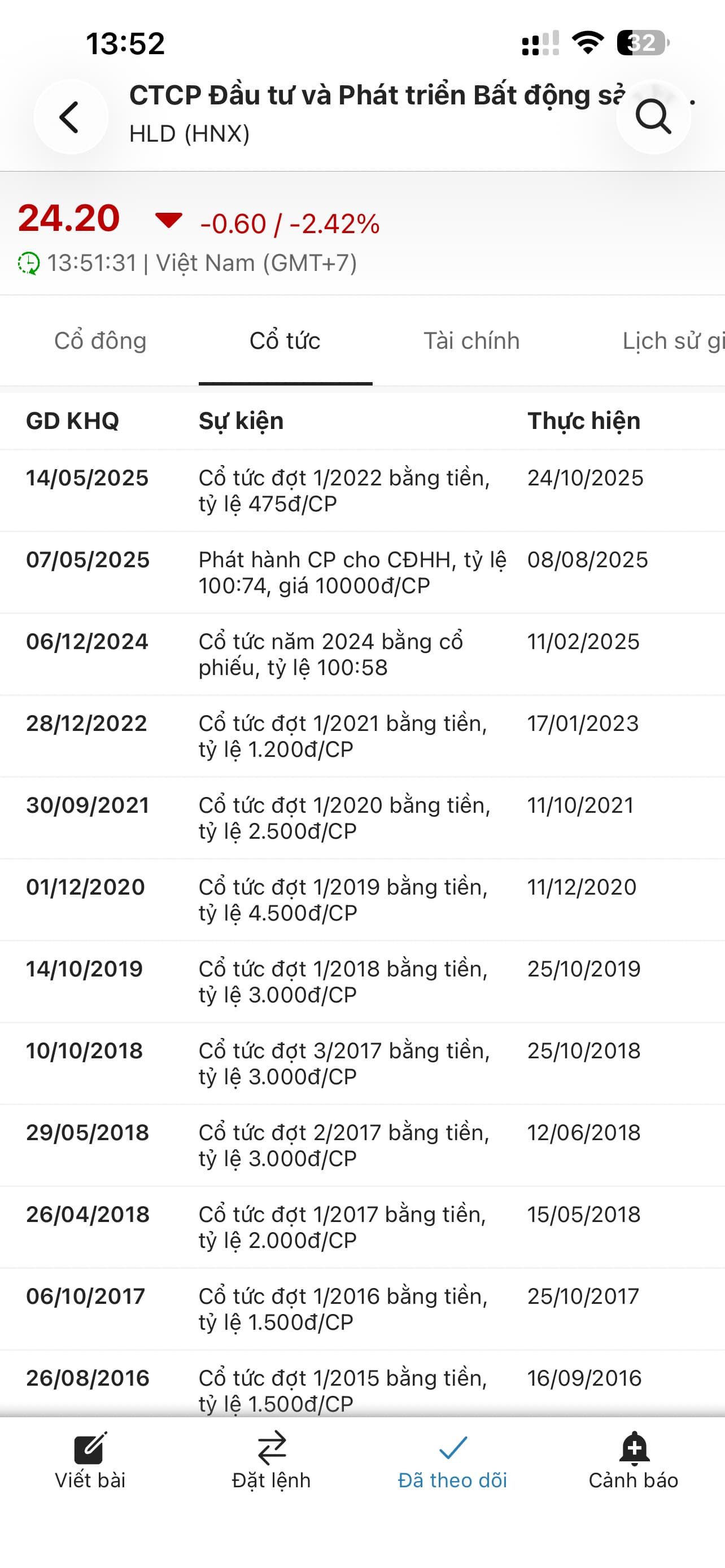 Sóng nào bác? HLD trước giờ toàn bán bds lúc trầm lắng, nhưng sp ngon nên tt vẫn mua. 2018-2020 cổ tăng 4 lần trong khi Vnindex giảm 12xx về 900 đấy. Bác nói gì cũng nên xem lại lịch sử tí.