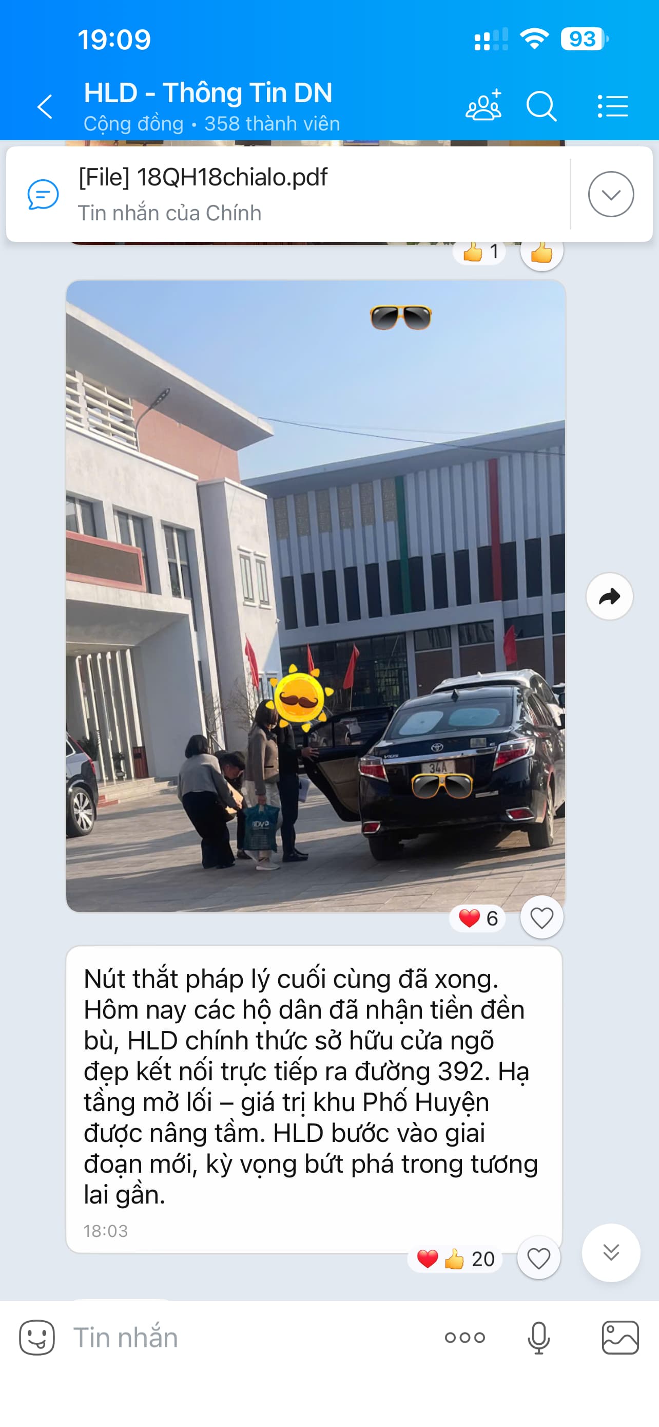 - Nút thắt pháp lý cuối cùng đã xong. Hôm nay các hộ dân đã nhận tiền đền bù, HLD chính thức sở hữu cửa ngõ đẹp kết nối trực tiếp ra đường 392. Hạ tầng mở lối – giá trị khu Phố Huyện được nâng tầm. HLD bước vào giai đoạn mới, kỳ vọng bứt phá trong tương lai gần.