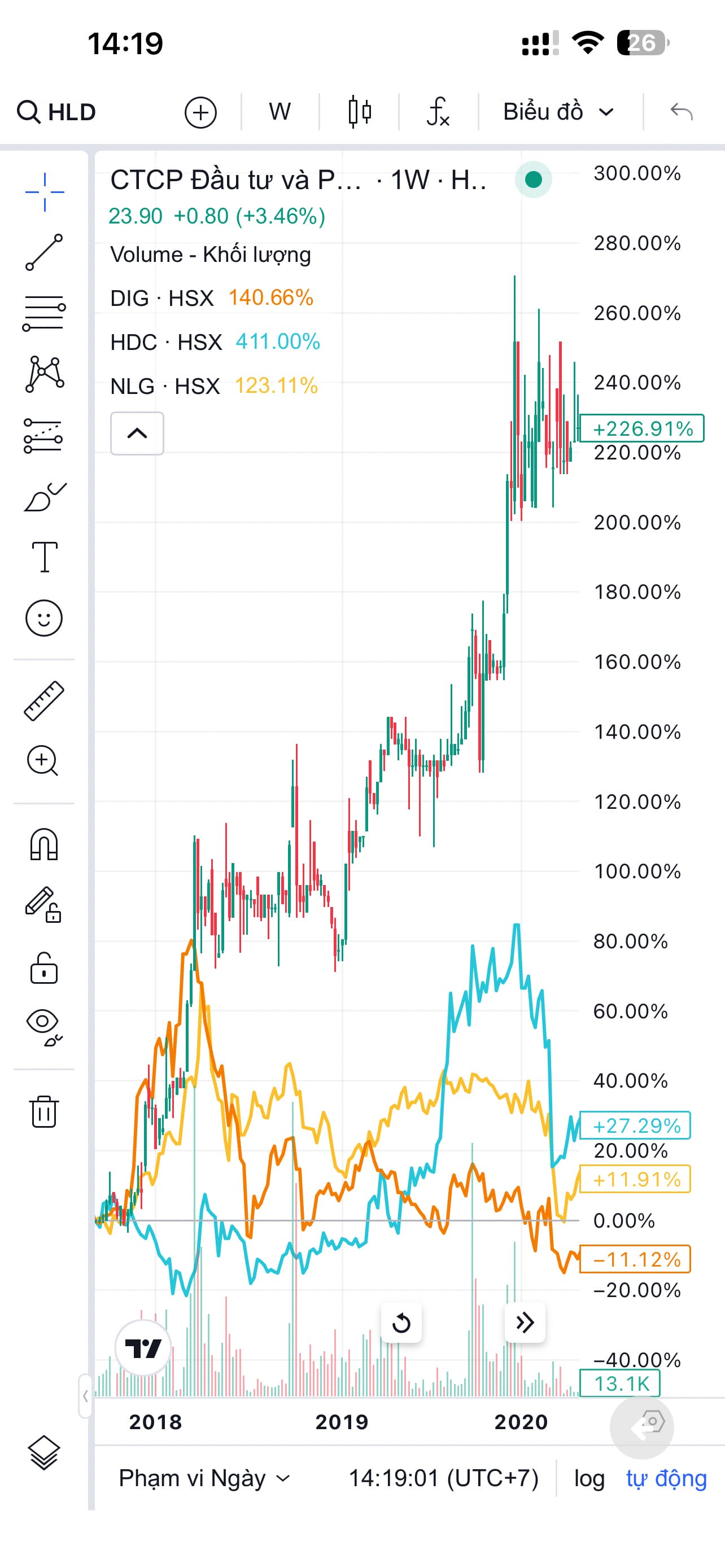 Năm 2017 HLD khởi công dự án Trầu Cau Bắc Ninh hơn 9ha, vốn hoá khi đó cỡ 300 tỷ, sang 2018 bán hàng, lãi tầm 2xx tỷ (kiếm gần 1 lần vốn hoá của giai đoạn cuối 2017), cổ tăng khá khá hàng chục lần, bất chấp đầu 2018-đầu 2020 là VNindex downtrend, HLD vẫn x4 trong 2 năm tt sụt giảm đó.