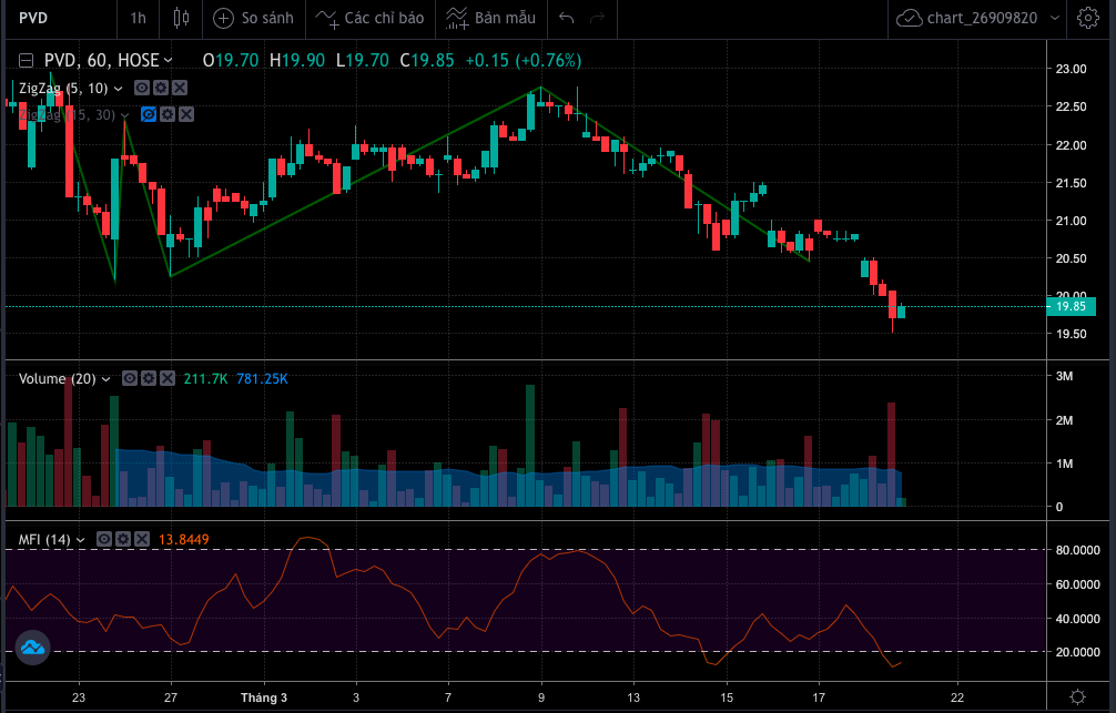 Đoạn này các chỉ báo động lượng không còn nhiều ý nghĩa, chúng ta chủ yếu theo dõi cung cầu và mua bán khi cổ phiếu xuống thấp hay lên cao hơn vùng giá trị hợp lý thôi.