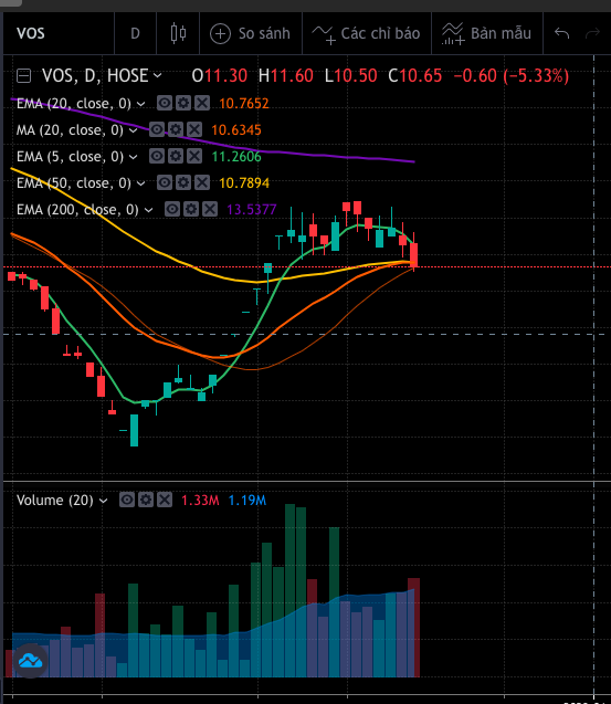 VOS trading được chứ chưa có sóng lớn, vùng mua hợp lý quanh 9 - 10. Bán ra 12 - 12,5. Chú ý cây ngày 6, 7, 13 là ngày phân phối, không mua vào quanh giá đó.