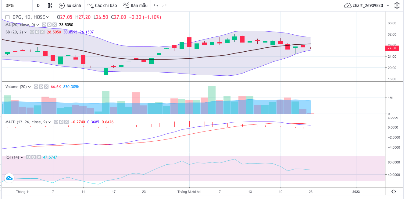 Khả năng DPG lên 29 - 30 khá mong manh, bạn nên xem xét mua vào ở những nhịp chỉnh sâu trong phiên để hạ giá trung bình bán ra từ từ quanh 28.