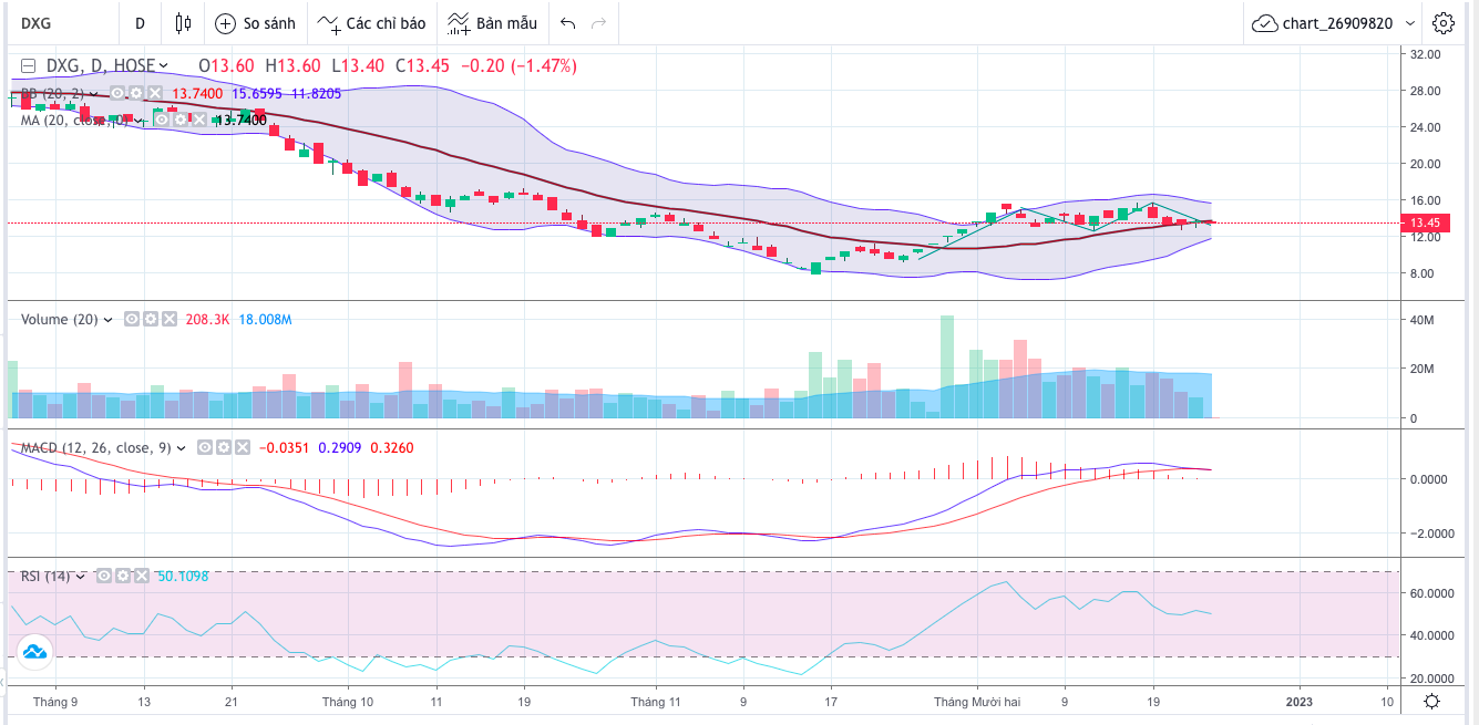 DXG vừa hoàn thành mẫu hình 2 đỉnh và đi ngang chưa rõ xu hướng trên đồ thì ngày.