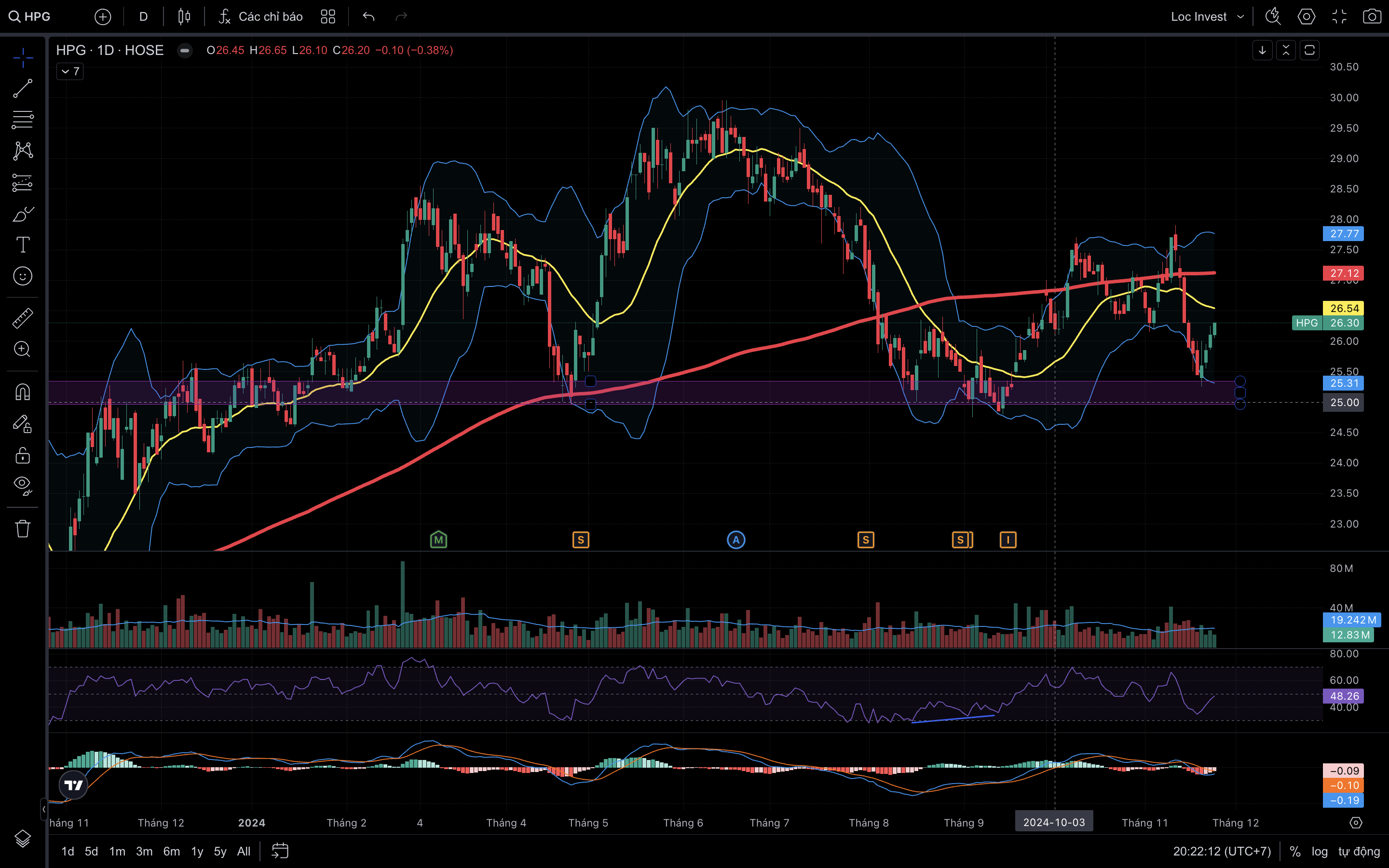 Kết luận: HPG là mã cổ phiếu rất đáng đầu tư trong giai đoạn hiện tại khi là DN đầu ngành thép với tiềm lực tài chính bền vững, ngoài ra triển vọng tăng trưởng của HPG là rất lớn khi ngành thép bước vào chu kỳ phục hồi và nhiều yếu tố ủng hộ như tăng trưởng mạnh mẽ từ các dự án mới như Dung Quất 2 chuyên sản xuất HRC và sản xuất thép cho đường ray xe lửa phục vụ cho dự án đường sắt Bắc – Nam và Kỳ vọng Thuế chống bán phá giá thép HRC từ Trung Quốc và Ấn Độ sẽ được ban hành. Với những yếu tố trên giá mục tiêu của HPG được đưa ra trong năm 2025 là 33.000 - 34.000 VND/cp upside hơn 25%.