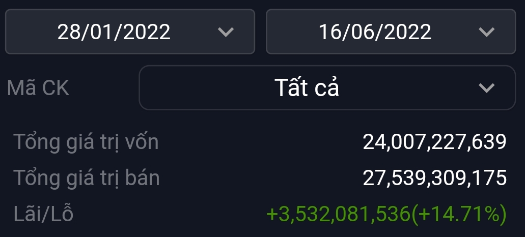 Như này thì tài khoản lãi không phải do cổ phiếu bất động sản. Nửa năm nay cổ bất động sản chỉ đi vào lòng đất. Show ra để chứng minh khả năng giao dịch thì được nhưng để chứng minh là giữ cổ phiếu bất động sản có lãi thì mõm quá.