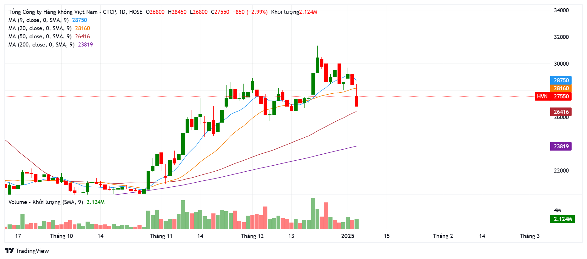 Như dự đoán HVN đang hạ độ cao xuống còn nền 27.X, chúc mừng anh chị nào mình đã bán được quanh vùng 29.X. Vùng này ai đã bán hoặc vẫn chưa mua thì ad khuyến nghị mình đứng ngoài nha ạ