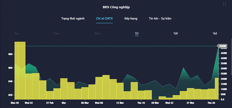 Các cổ phiếu trong ngành BDS KCN đều nhảy vọt về rating, trong khi đó dòng tiền đổ vào (cột màu vàng) cũng tăng gấp đôi so với tuần vừa rồi