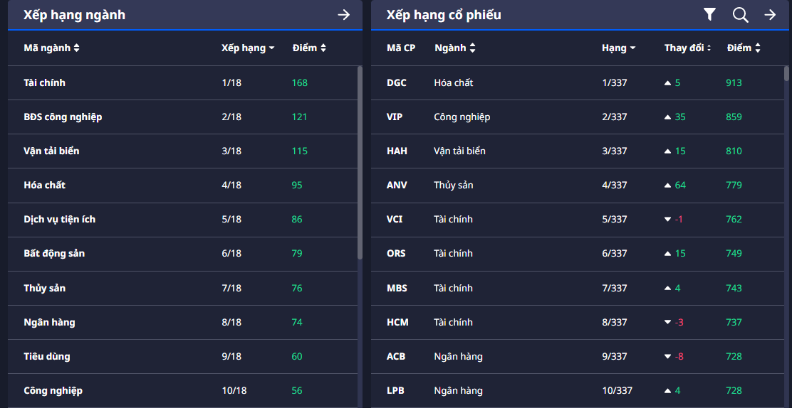 Kết thúc phiên 04/4, AI vẫn duy trì cảnh báo rủi ro thị trường đang tăng lên. Tuy nhiên 1 điều ngạc nhiên là BDS công nghiệp và Vận tải biển đã nhảy vào top 3 ngành. Trong đó top 5 vắng bóng cổ phiếu ngân hàng: DGC, VIP, HAH, ANV và VCI