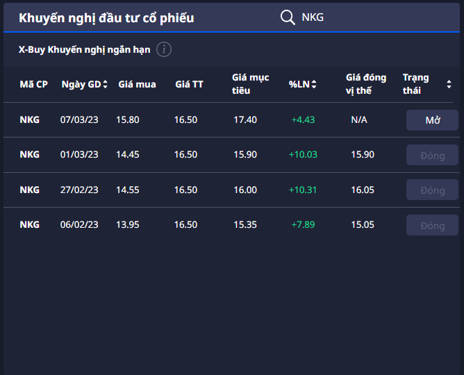 Ngành thép hay nguyên vật liệu các phiên này được AI rating khá cao, cụ thể có NKG đã được AI khuyến nghị ra vào 3 lần với lãi hơn 30% đó bác.
